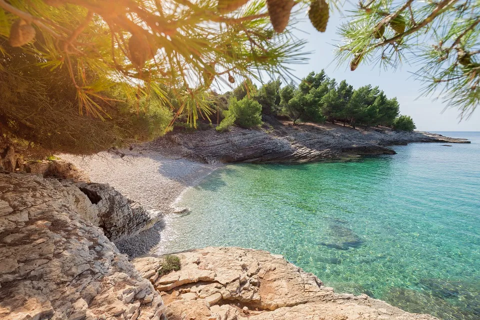 Die Küste Istriens ist geprägt von kristallklarem Wasser, Fels- und Kiesstränden sowie kleinen Buchten. Im Landesinneren finden sich grüne Hügel, Olivenhaine, Weinberge und malerische Dörfer. Besonders bekannt sind der Naturpark Učka und das Mirna-Tal.